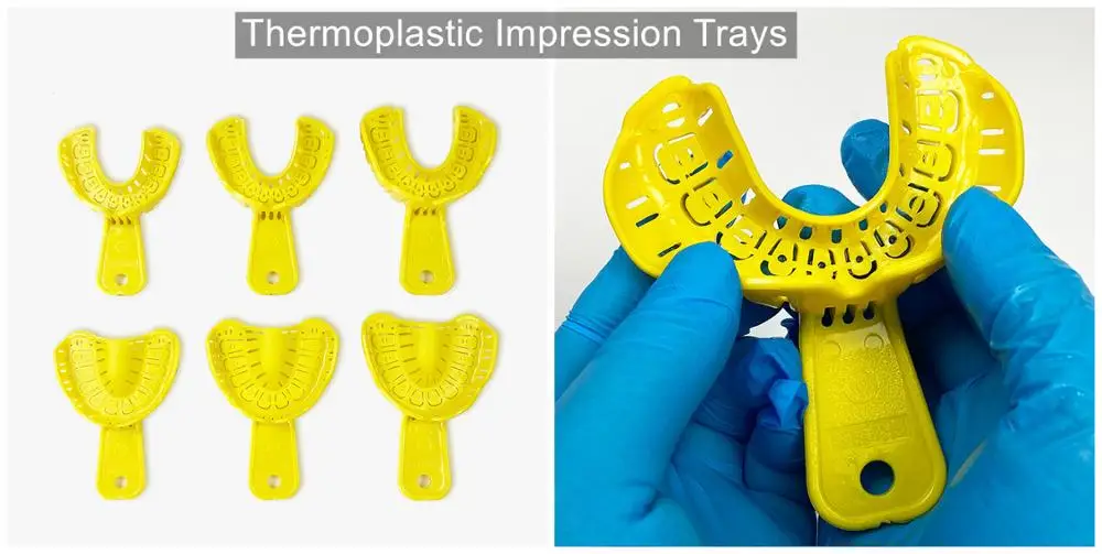 12Pis Dental Orthodontic Trays Thermoplastic Impression Tray Adjustable Hot Thermal Deformation Yellow
