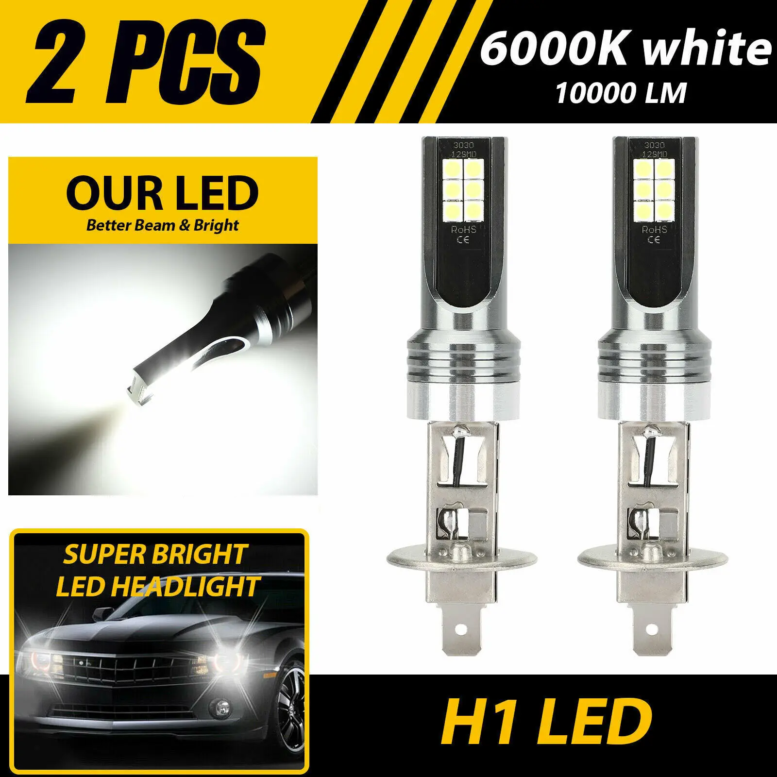 2PCS H1 LED 3030 12SMD 12V 24W Car Fog Lights Bulbs 6000K White Auto Fog Lamp Day Running Light