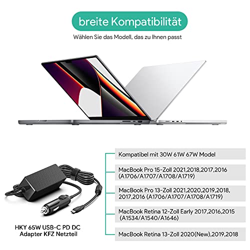 HKY 65W DC 12V-24V Caricatore Auto USB C PD Alimentatore da Auto Type C per Lenovo Thinkpad X1 Carbon 5/6/7th Gen, T480 T580 E480 E490 L480 L580 X380 X390, HP 1012 G1 /1013 G3, HP Spectre x360 X2