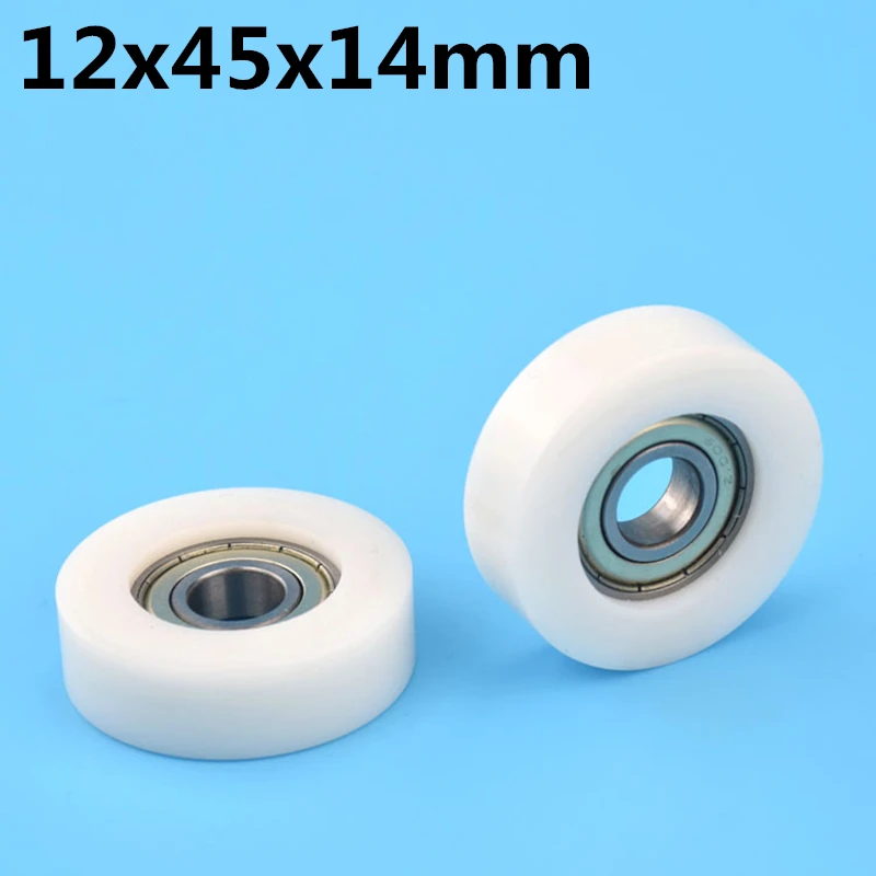 1Pcs 12x45x14 mm Nylon Plastic Wheel With Bearings Flat miniature pulley POM Hard bearing