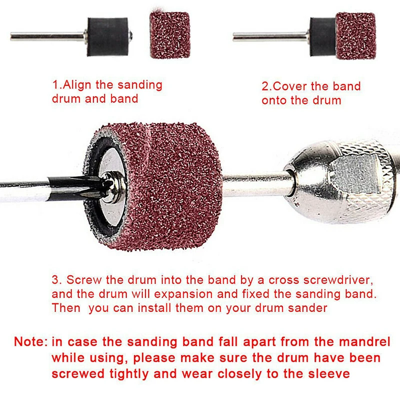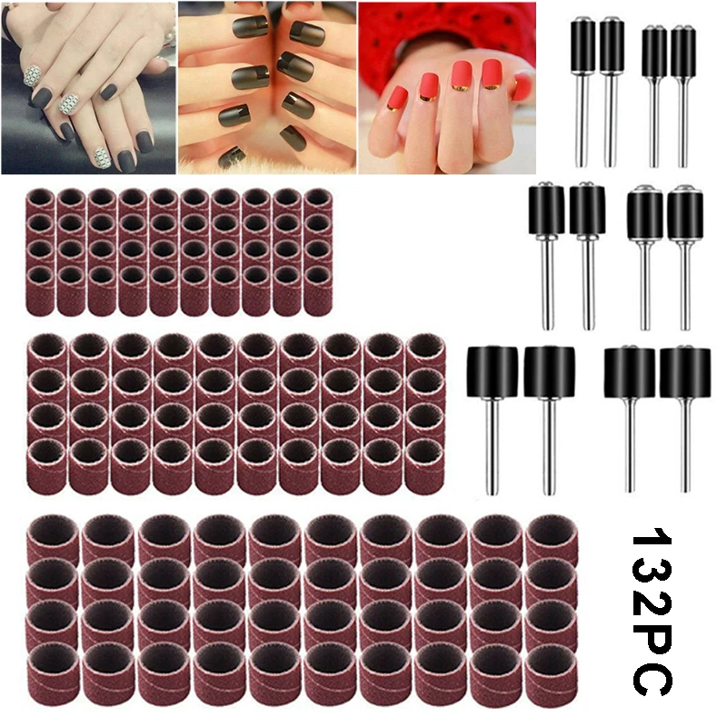 132Pcs Sanding Band Drum Sleeve Grit Mandrel for Rotary Tool Kit Nail Art Manicure Tool Electric Mill Dedicated Sandpaper Circle