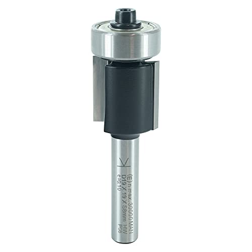 Fresa per rifilare a filo con due taglienti in metallo duro e cuscinetto a sfera sostituibile sulla faccia. Per fresatrici verticali e per la rimozione di impiallacciature sporgenti. Se utilizzata con le dime, è possibile produrre copie 1:1 dei vostri pezzi e forme curve.