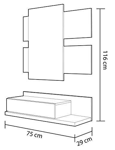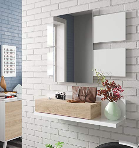 13Casa Aragona B01 Mobile Ingresso + Specchio, 75X29X20 H cm, Bianco, Faggio, Melamina, 20x75x29 cm