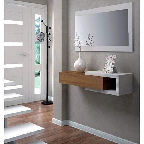 13Casa Toledo B4 - Mobile ingresso + specchio. Dim: 95x26x19 h cm. Col: Bianco. Mat: Melamina, Specchio.