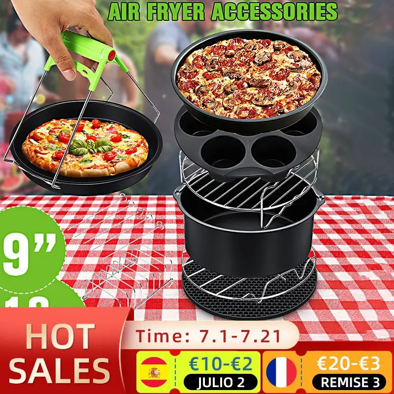 13Pcs Air Fryer Accessories 9 Inch Fit for Airfryer 5.2-6.8QT Baking Basket Pizza Plate Grill Pot Kitchen Cooking Tool for Party