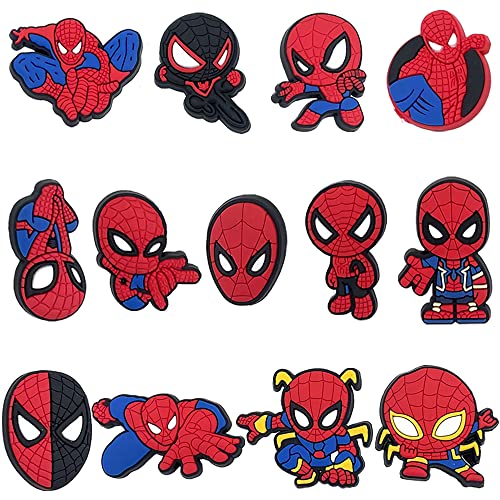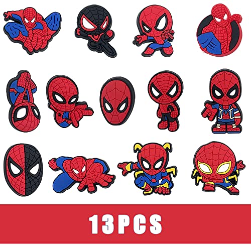 13PCS Spider Man Scarpa Charms Adatto per DIY Zoccolo Sandali Decorazione PVC Cartoni Animati Scarpe Charms Diversi Accessori