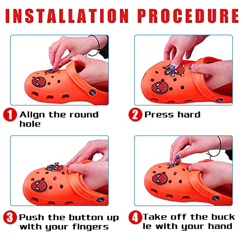 Facile da usare: per installare il ciondolo della scarpa, si prega di tenerlo e inserirlo da un angolo di 45 gradi. Per toglierlo, raggiungi i fori delle scarpe, usa le dita per spingere leggermente la parte inferiore del ciondolo della scarpa fino a quando non esce.