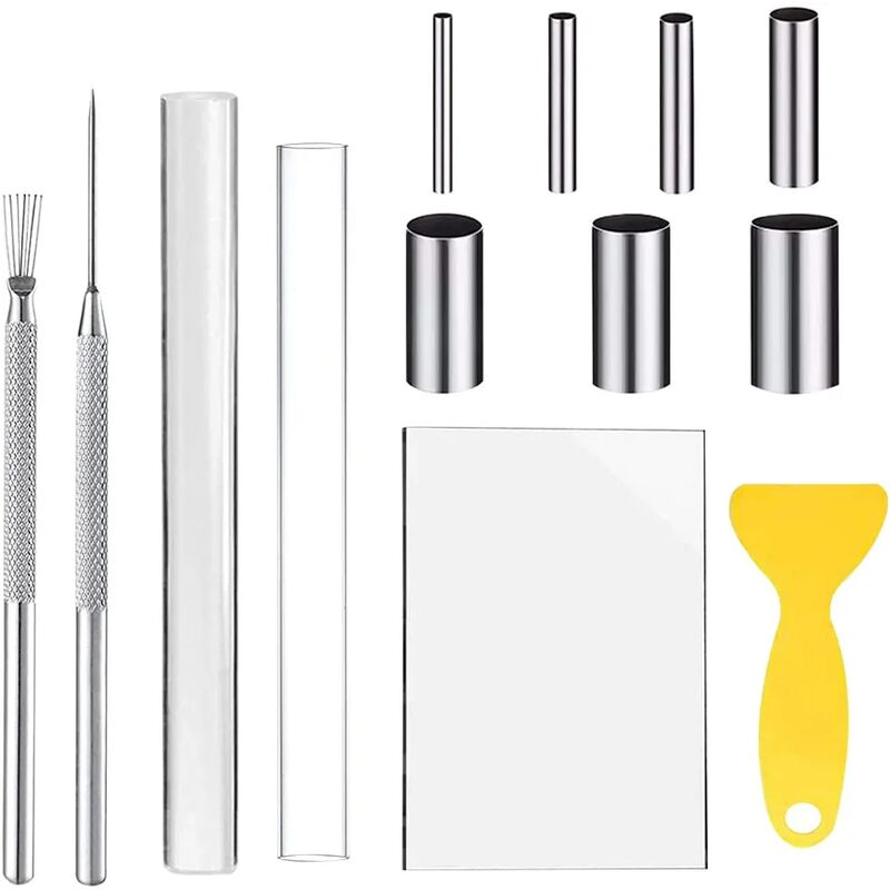 il rullo di argilla trasparente è alto circa 20 cm e ha un diametro di circa 2 cm. Il colore puro non ostruirà la tua visuale quando arrotoli l'argilla in un foglio uniforme. 【Taglierina per argilla di 7 dimensioni e 2 aghi per modellare】:Set di punteruolo per taglierino per argilla in acciaio inossidabile Approssimativo diametri: 3 mm, 4 mm, 6 mm, 8 mm, 10 mm, 12 mm e 16 mm. Diverse dimensioni per soddisfare le tue esigenze per vari progetti di artigianato con diversi effetti creativi. Lo strumento Feather Line Texture crea molte linee sottili per collegare l'argilla con un clic 【Lastra acrilica e raschietto resistenti】:Lastra acrilica rettangolare, la dimensione è 15 x 10 cm, la lastra acrilica viene fornito