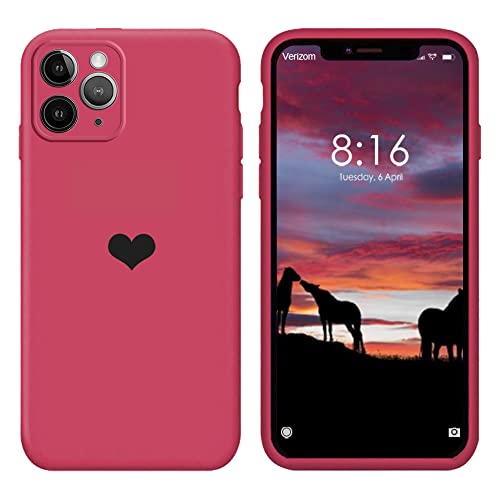 13peas Compatibile con iPhone 12 Pro Max 2020, motivo cuore in silicone liquido e gomma, protezione completa degli urti, custodia protettiva per Apple 12 Pro max (rosso rosa)