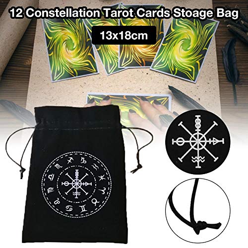 13x18CM Borsa Portaoggetti per Tarocchi, 12 Constellation Drawstring Bag, Sacchetti Regalo in Velluto Spesso, Sacchetti per Gioielli con Ricamo Simbolo, Gioco da Tavolo Protettivo con Carte (Nero)