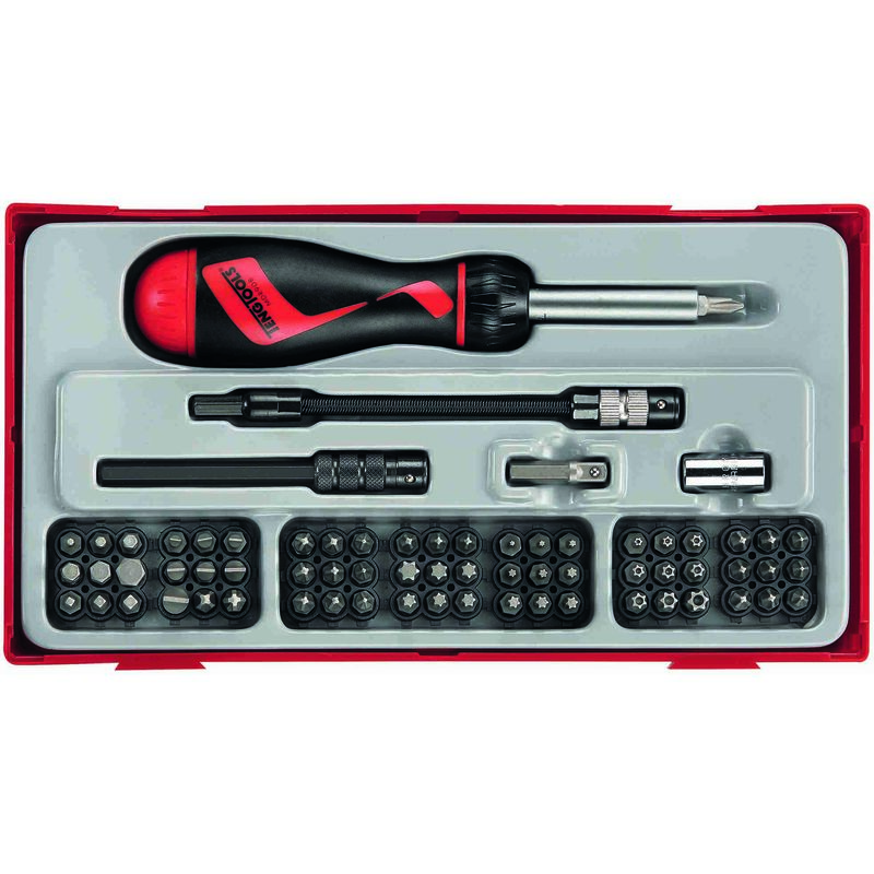 Il set di cacciaviti e Punte TTM074 è composto da 74 Pezzi realizzati in cromo vanadio con finitura satinata. Viene consegnato in un vassoio resistente, che ti permetterà di mantenere gli strumenti organizzati e protetti, grazie al coperchio con chiusura. /br>p> /br>p> Contiene: < /p>/br>p>4" estensione Adattatore esagonale esterno Rocce scanalate: 0.6x3.5-0.6x4.5-0.8x4.0, 0.8x5.5-1.0x5 . 5-1.2x5.0, 1.2x6.5-1.4x7.0-1.6x8.0 mm Phillips rocce PH1 (4) - 2 (7) - 3 (1) oscilla Pozidriv PZ1 (4) - 2 (7) - 3 (1) oscilla fori esagonali. 2-3-4-5-6-8 mm rocce TX TX6-7-8-9-10-15-20 (3)- 25 (x 3)-27-30-40 Rocce TPX TPX10-15-20 (2)-25 (2) 27-30-40 rocce quadrate incastonate 1, 2, 3 br>frese a croce da roccia GR 2 (3) cacciavite a cricchetto Quadrato esterno 1/4”x1/4 Quadrato interno 1 / 4”x1/4” Quadrato Interno Esagonale Prolunga Flessibile da 6” -Il set di cacciaviti e punte TTM074 è composto da 74 pezzi realizzati in cromo vanadio con finitura satinata. Viene consegnato in un vassoio resistente
