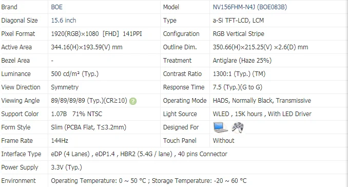 144HZ Contrast ratio1200:1 laptop FHD LCD display NV156FHM-N4K FIT NV156FHM-N4G NV156FHM-N4J for Lenovo Saver Y7000P 40PIN