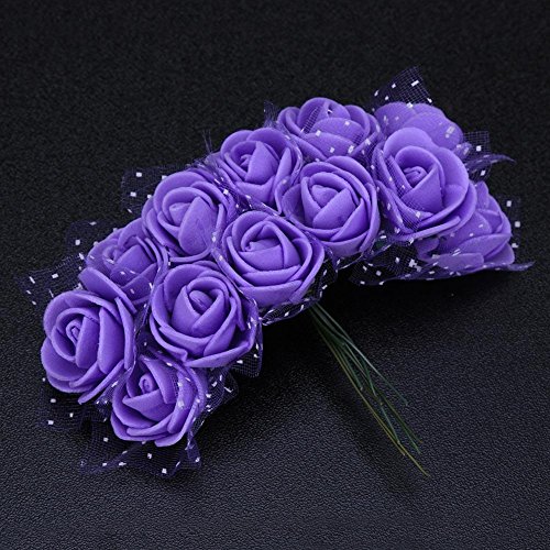 UEB 144pcs Teste di Rose in Schiuma Mini Rose Finte per Decorazioni Bouquet Fiori Artificiali Decorazione per Matrimonio Festa Auto Casa DIY Ghirlanda di Fiori da Sposa (Viola)