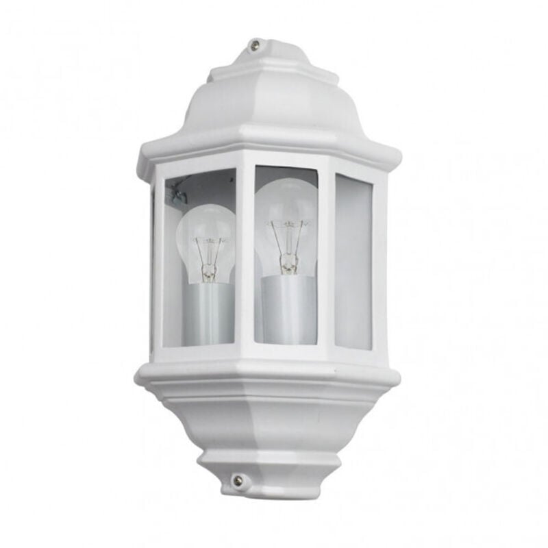 Colore: Bianco Peso netto: 1415 gr Peso lordo: 1585 gr Misure imballo: 39x23x13 cm Dimensioni (altezza x larghezza x profondità): 38,5x22x12,5 cm Materiale: Alluminio/Vetro Indice di protezione: 44 IP Voltaggio: 220-240 V Utilizzo (interno/esterno): Consigliato per uso esterno Lampadine incluse: No Proiezione della luce: Luce diretta Tipo di installazione: Superficie Uso (Domestico/Professionale): Domestico Portalampada: 2xE27