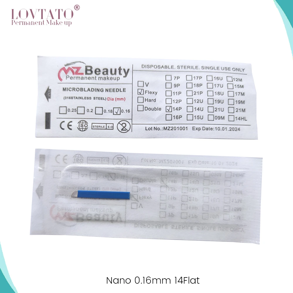 Nano Blue 0.16MM 14Flat Microblading Needles For Permanent Makeup Supplies Manual Eyebrow Tattoo Blades Thin Nano Hair Strokes