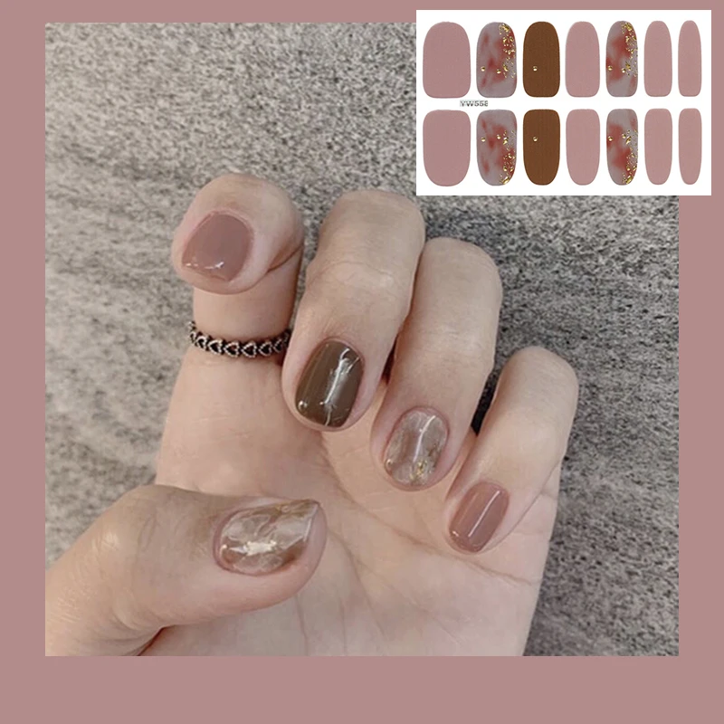 14tips/sheet Marble Glitter Element Nail Art Stickers Environmental Full Cover Adhesive Nail Wraps DIY Salon Manicure Decoration