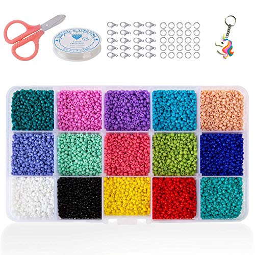 15000pcs15 Colore 2mm Perline per Braccialetti,Set Perline per Bigiotteria Gioielli Collane Phone Beads Fai da te Bambini Adulti,Perline Vetro Colorate con Perline Lettere Cordino Elastico Accessori