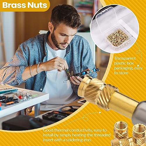Facile da Usare: il dado in ottone ha una buona conducibilità termica e può essere facilmente installato nel foro conico della stampante 3D semplicemente riscaldando l'M3 inserti filettati con un saldatore. Il dado zigrinato riscaldato trasferirà il calore alla parte in plastica della macchina, ammorbidendo il foro in plastica e facilitando così l'inserimento del dado in ottone nel foro.