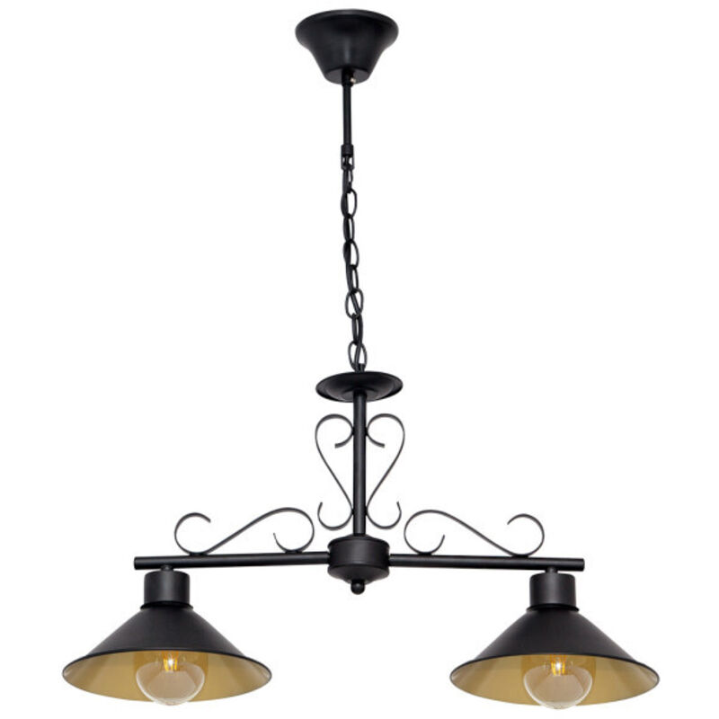 Sospensione a due luci della serie AZALEA di colore NERO/ORO. Realizzato in metallo. Il suo design offre una versione sofisticata dello stile rustico, presentando l'interno dei suoi paralumi in oro e i suoi paralumi disposti in modo lineare. È ideale per ampi soggiorni e sale da pranzo di case di campagna o abitazioni con relativi stili decorativi. Si consiglia vivamente di completare con alcune bellissime lampadine decorative vintage a filamento, che insieme al colore dorato forniscono un tono caldo alla stanza che decorano. Ha due portalampada E27. Lampadine non incluse. La sua altezza è regolabile in altezza e ha una dimensione di 54 & lt, 74x58x20 centimetri.
