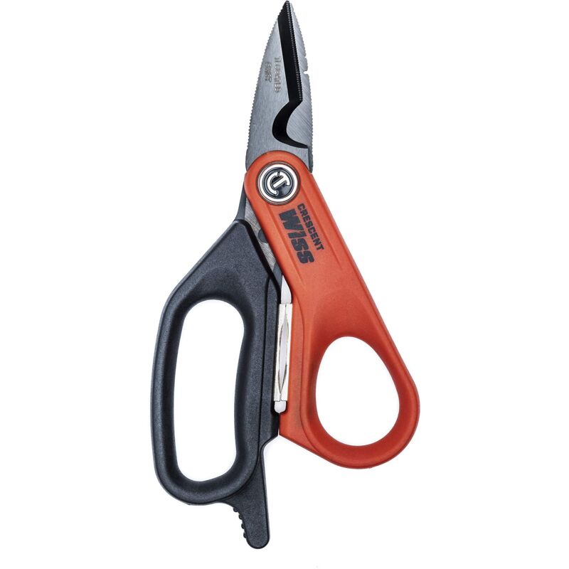 Con lame in acciaio rettificate di precisione, queste forbici elettriche/dati Crescent Wiss compatte sono perfette per lavori su cavi elettrici e dati. Il rivestimento della lama in titanio è tre volte più duro dell'acciaio per una maggiore durata e una lama inferiore a doppia dentatura impugna il materiale per un migliore controllo e tagli più puliti. Le forbici incorporano un tagliacavi per potenti tagli di taglio, tacche spelafili integrate da 19 e 23 AWG, una funzione zona di presa per serrare i dadi dei cavi o crimpare i collegamenti a bassa tensione e dentellature sui bordi esterni per alesare tubi e fori per scatole elettriche . Le impugnature ergonomiche touch-point sono dotate di impugnature in morbido TPR testurizzato per un comfort eccezionale e un'estensione ergonomica della barra di controllo offre un maggiore controllo e una maggiore leva.