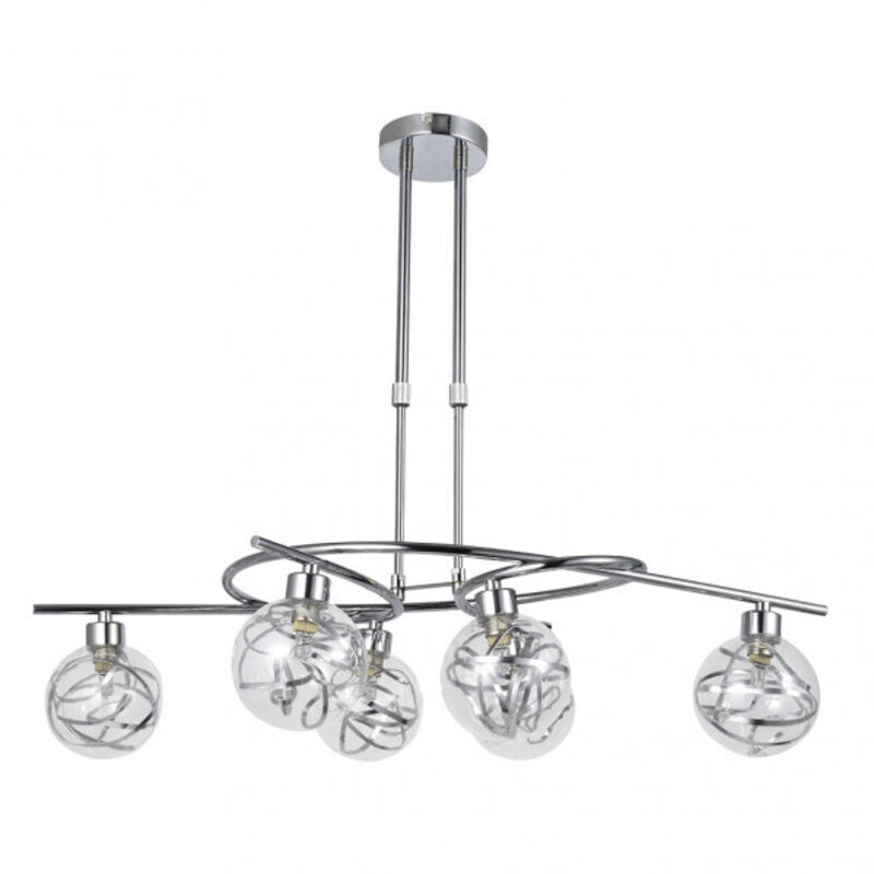 Sei lampade Lampade serie VARANASI, realizzate in metallo color CROMO e paralumi in vetro e metallo. Design moderno e molto originale, che mette in risalto oltre alla sua forma, i suoi paralumi, in cui il vetro rivela un accenno di nastri metallici all'interno, risultando in una composizione molto speciale per decorare sia i soggiorni che le camere da letto con un tocco molto personale. . Ha dimensioni, regolabili in altezza, di 47