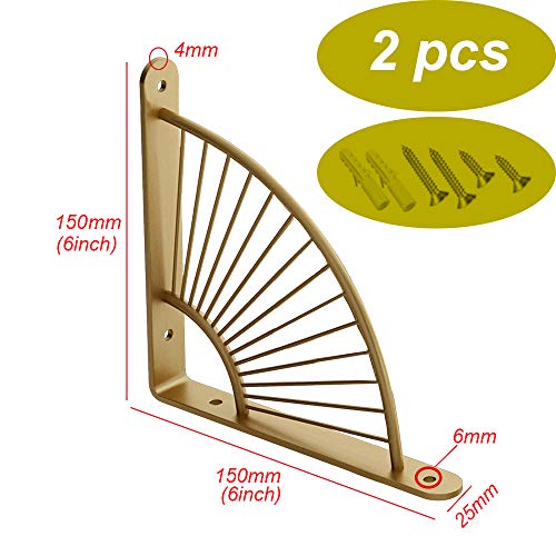 NWHJ 15cm/20cm/25cm/30cm Staffe Ferro battuto per mensole, Staffa a Parete Decorativa, Reggimensole in Metallo Dorato, Supporto per mensola, Forma di ventaglio, 2 Pezzi