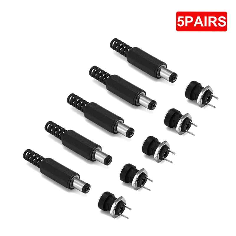 1/5pairs 12V 3A 5.5x2.1mm Male Plug Connectors DC Power Socket Female Jack Screw Nut Panel Mount Connector Adapter 5.5*2.1mm