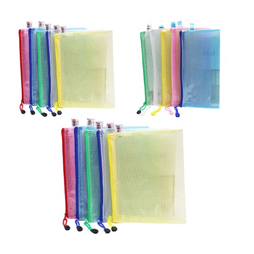 15Pcs Borse di File Plastic Wallets, A4+A5+A6 Sacchetto di Zip Impermeabile Plastic Folders, Zip Wallets Zip Lock Bags, Mesh Sacchetto Document Wallets Document Folder