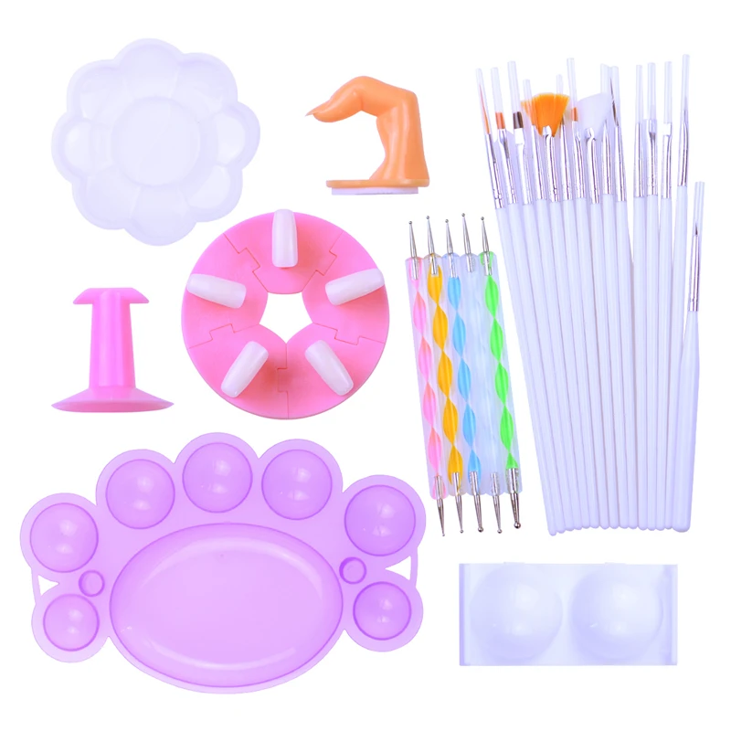 15pcs nail art brushes + 5pcs Point drill pen + 2pcs Nail Art Palette + 1pcs Practice Finger for Nail Base Tools Set