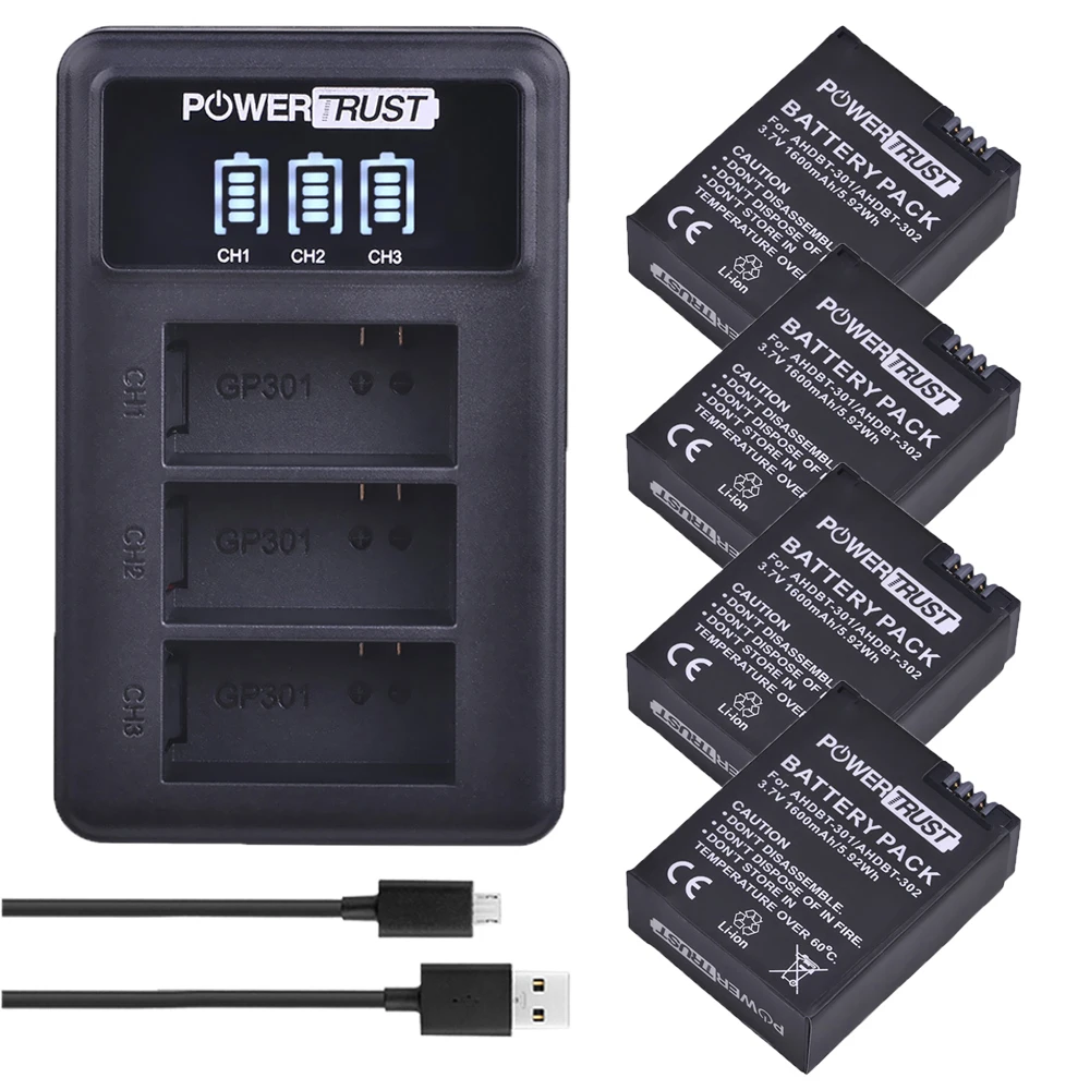 3.7V 1600mAh AHDBT-301 AHDBT301 AHDBT 301 Li-ion Battery for GoPro Hero3 + LED 3-Channel USB Charger for Gopro Hero 3/3