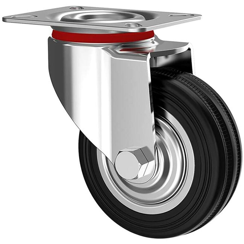 Descrizione Ruota da mm.200 compatibile per applicazioni industriali, scuole, negozi, ospedali. Ideali per carrelli, banchi da lavoro, fai da te e bricolage. Utilizzabile anche per lavori domestici, arredamento, divani, tavoli, supporti per piante, librerie, pattini, pattumiere, carrelli per la spesa, contenitori sotto-letto. Dotata di supporto in acciaio stampato zinco-cromato rotanti su doppia corona di sfere. Assemblaggio con dado autobloccante. Anello parapolvere sul giro di sfere. Ruota in gomma piena con flange in acciaio stampato zinco-cromato. Mozzo su cuscinetti a sfere schermati, foro passante.