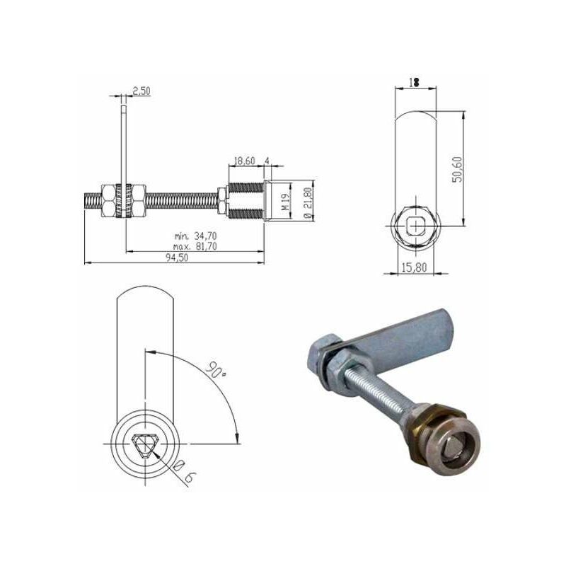 Metallo Pressofuso Nichelato Diametro Mm 19 Angolazione Apertura 90^ Destra Impronta Triangolo T6 -Prolunga Mm 74