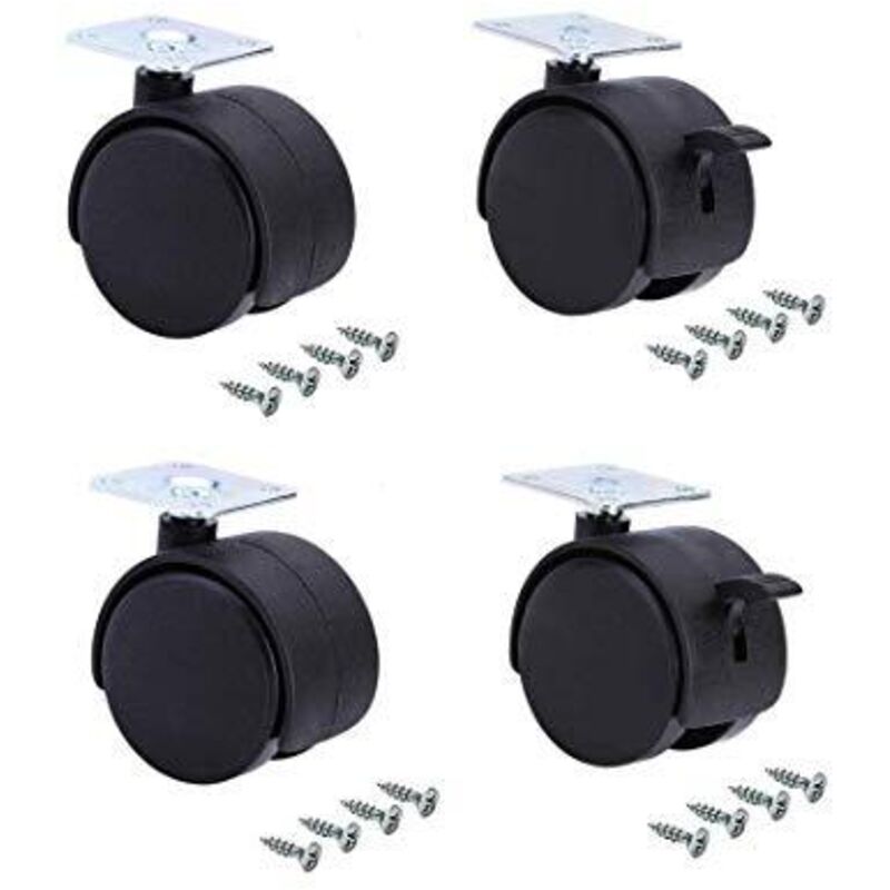Kit composto di 4 rotelle pivotanti da mm.40 (2 con freno + 2 senza freno) con piastra e le viti necessarie per l'assemblaggio. Di facile montaggio, queste ruote ottimizzano e migliorano i vostri mobili grazie ai loro cuscinetti a sfere, i quali forniscono una scorrevolezza dolce e silenziosa.