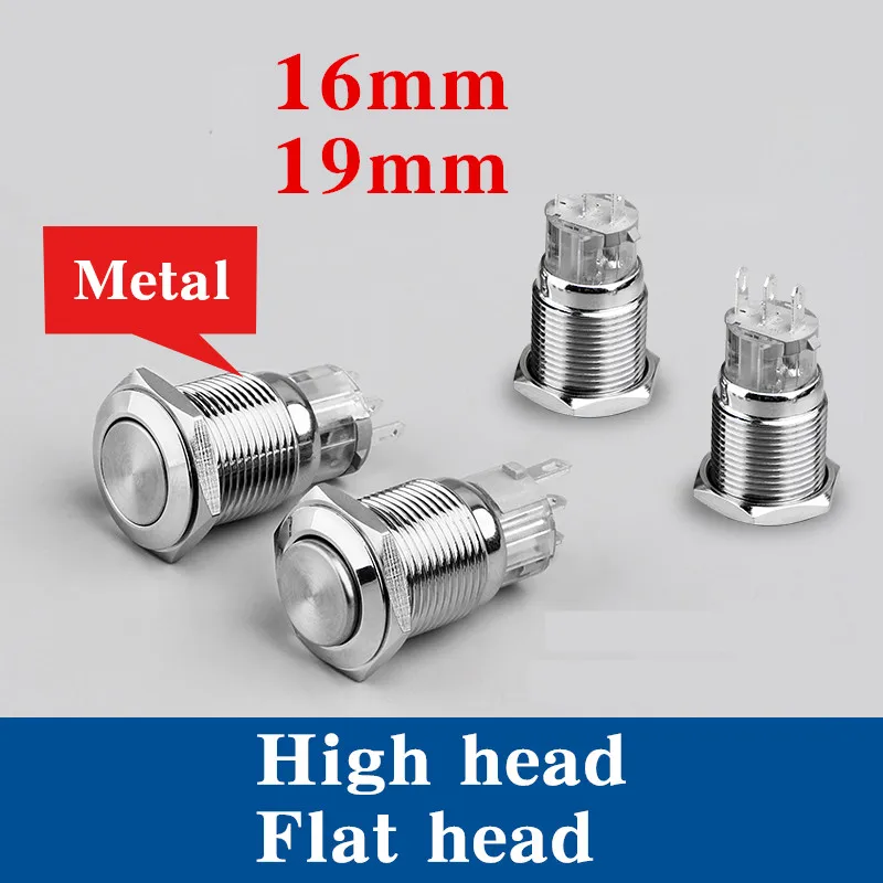 1PC 16/19mm DIY Switch bell metal button switch self reset / self locking waterproof welding leg single control / double control
