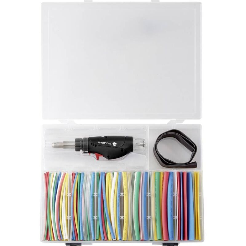 Dettagli tecnici Contenuto gas 15 ml Dimensione del prodotto, larghezza 33 mm Dimensione del prodotto, lunghezza 245 mm Dimensioni prodotto Altezza 190 mm Nota sul peso tara Peso 345 g Potenza (max.) 70 W Stili saldanti caratteristiche senza bombola del gas Temperatura (max.) 1300 °C Tipo punte di saldatura Filo metallico riscaldante, Ugello aria calda, Punta di saldatura Ulteriori dati tecnici Una finestra può mostrare il livello del gas Una finestra può mostrare il livello del gas Set di tubi termoretraibili con mini bruciatore a gas caldo 162 pz. Questo set di tubi termoretraibili TOOLCRAFT contiene un mini bruciatore a gas caldo con fiamma regolabile o calore senza fiamma con una temperatura massima di 1300 °C. Con accensione piezo incorporata per gas butano. Indicatore di livello del gas tramite finestra trasparente. Il tubo termoretraibile in poliolefina (PEX) senza adesivo in dotazione viene utilizzato ovunque sia richiesta una protezione flessibile ed elastica. Quando il tubo