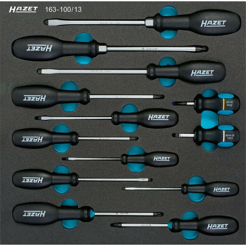 Safety-Insert-System HAZET (SIS) Safety-Insert-System, alloggiamento in espanso morbido bicomponente. Alloggiamento adatto anche per HAZET Assistent Presa di forza: Profilo Pozidriv PZ, Profilo intaglio a croce PH, Profilo ad intaglio Dimensioni / Lunghezza: 344 mm x 342 mm Peso netto (kg): 1.25 kg Dimensione sistema di ordinamento: 2/3 (344 x 342 mm) Safety-Insert-System HAZET (SIS) Sistema di ordinamento perfetto - tutti gli utensili saldamente inseriti al loro posto Rapido controllo di completezza integrato - individuazione immediata dell'utensile mancante Infinite possibilità di combinazione Numero utensili: 13 Larghezza 342 Lunghezza (cavo) 344 Unità di uscita Pozidriv Profil PZ, Kreuzschlitz Profil PH, Schlitz Profil Dimensioni dell'imballaggio 1 Contenuto della fornitura 803-25, 803-30, 803-35, 803-40, 803-65, 803-80, 801NK-PH2, 801NK-55, 803-PZ1, 803-PZ2, 803-PH1, 803-PH2, 803-PH3
