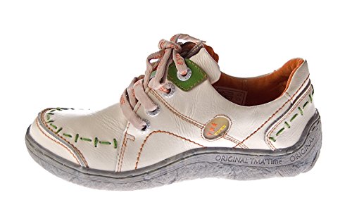 TMA Eyes 1646- Scarpe da donna in pelle Sneakers comode Used Look nei colori Nero Verde Azzurro Rosso Bianco Scarpe sportive con lacci, bianco (Bianco/beige), 38 EU