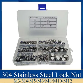 165pcs/Set M3 M4 M5 M6 M8 M10 M12 Stainless Steel Nylon Lock Nut Metric Assortment Kit Insert Locking Nuts