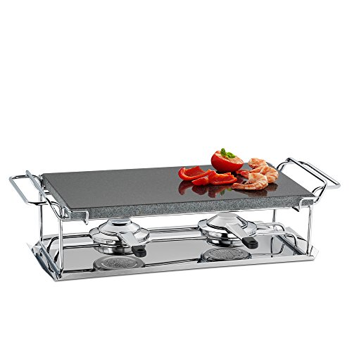 Grigliare diverso, pietra: pietra ollare in granito con scaldavivande, sottopiatto e sicurezza coprifiamma per rilassanti serate con la famiglia e gli amici per circa 4 persone