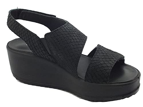 IGI&CO 1667800 Nabuk Tango Nero Sandali per Donna con zeppa alta doppia chiusura a strappo (Taglia 37)