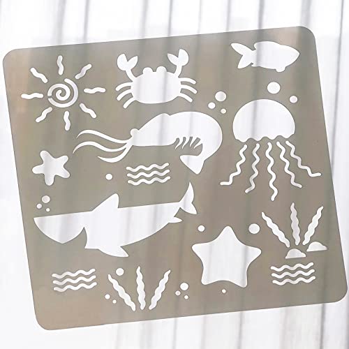 【Stencil Animali】 i 16 stencil pittura sono tutti temi marini, inclusi sirene, squali, tartarughe, granchi, polpi, delfini e altro ancora