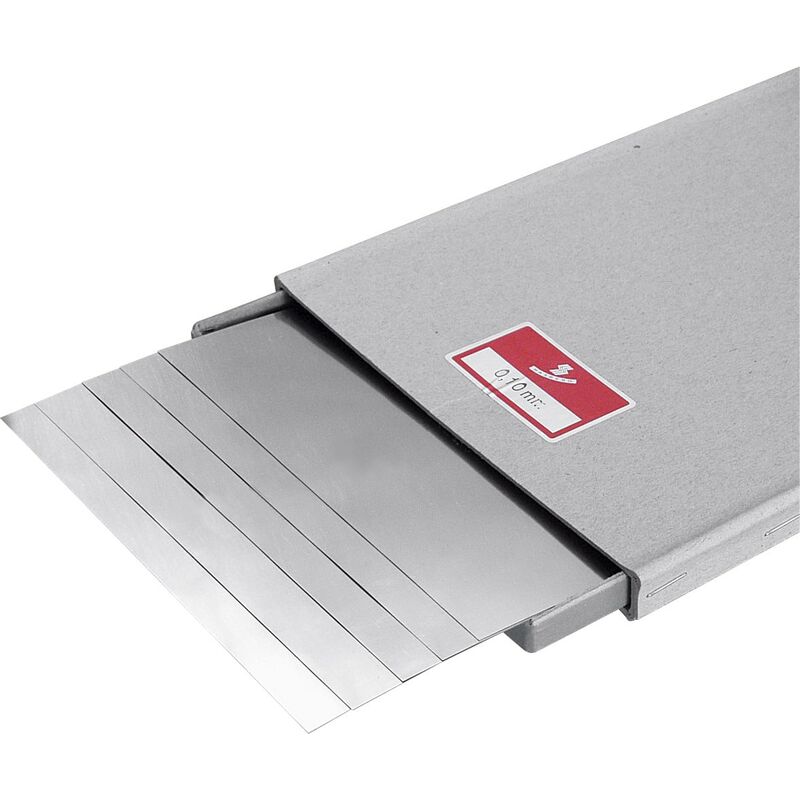 Nastro in acciaio con funzione di spessimetro rigido, laminato a freddo, con elevata precisione di planarità. Lo spessore della pellicola è marcato in modo indelebile. Contenuti in scatole robuste. Inossidabile − acciaio legato resistente alla ruggine e agli acidi, materiale n. art. 1.4310 (o 1.4301 spessore 0,02 e 0,05mm), laminato a freddo, rigido, superficie lucida. Uso: Allestimento di utensili, regolazione di gruppi, compensazione di tolleranze, supporto per dispositivi, allineamento di attrezzature, allestimento di stampi, regolazione del gioco di cuscinetti, adattamento di gruppi, regolazione delle lame di forbici, allineamento di utensili, ecc. Fornitura: 1 Confezione con 5 fogli. Dati tecnici Larghezza pellicole mm 150 Numero fogli 5 Lunghezza pellicole mm 500 Attributo del nome del prodotto inossidabile Materiale Acciaio legato, INOX Tipo di prodotto Foglio Limite di errore, µm ±13 Spessore, mm 1 Materiale acciaio legato resistente alla ruggine e agli acidi