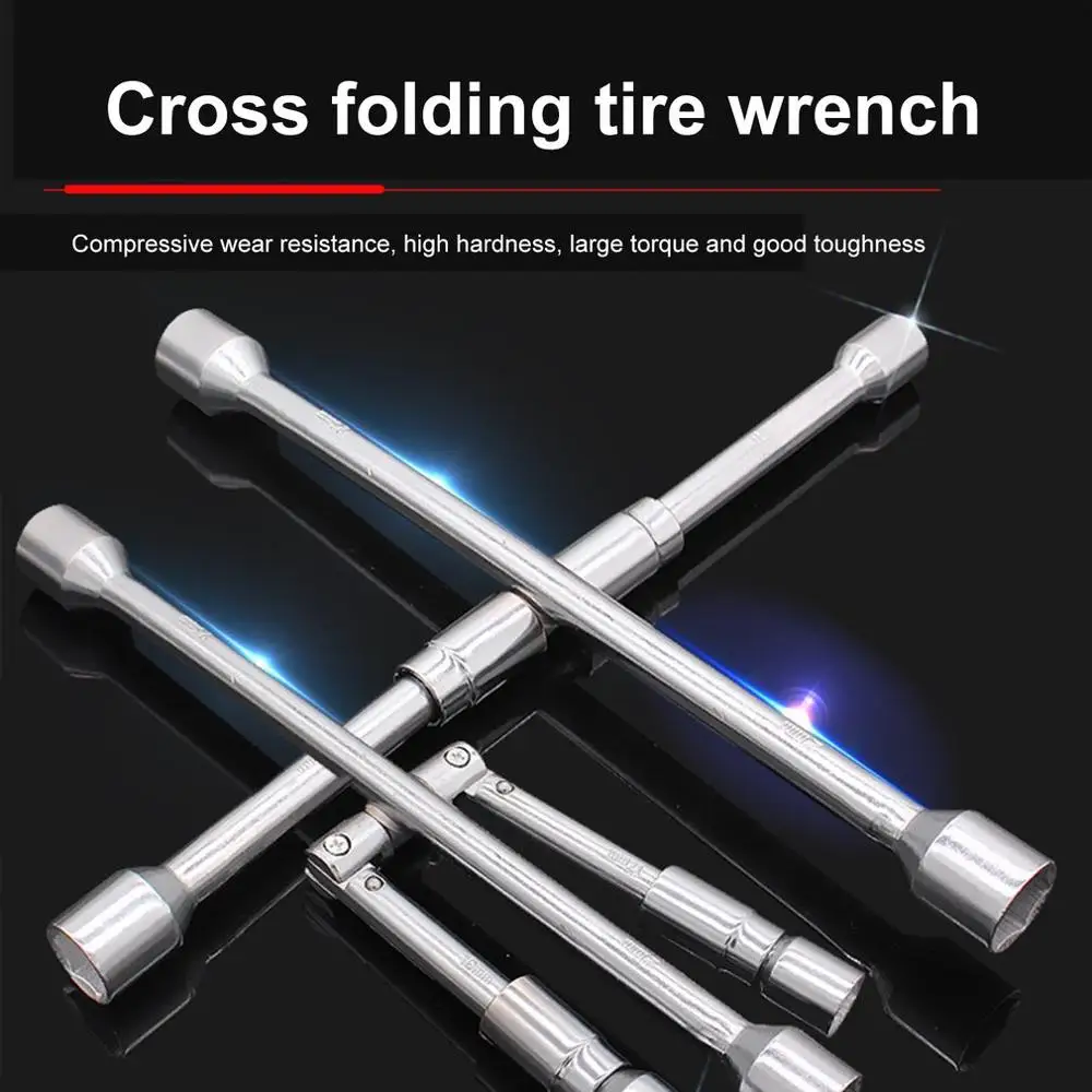 17/19/21/23mm 4 Way Car Repair Wheel Lug Nut Socket Cross Wrench Spanner Hand Tool Folding Wrench Remover Mounting Spanner