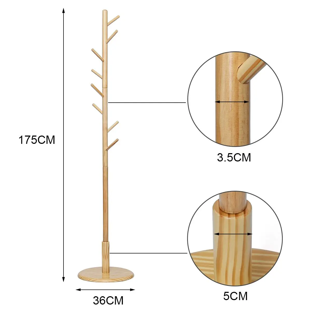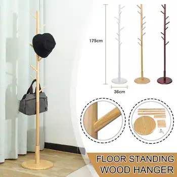 175cm Multifunction Solid Wood Hanger Floor Standing Coat Rack Organizer Hanger Hook Stand for Hats Scarves Clothes Handbags