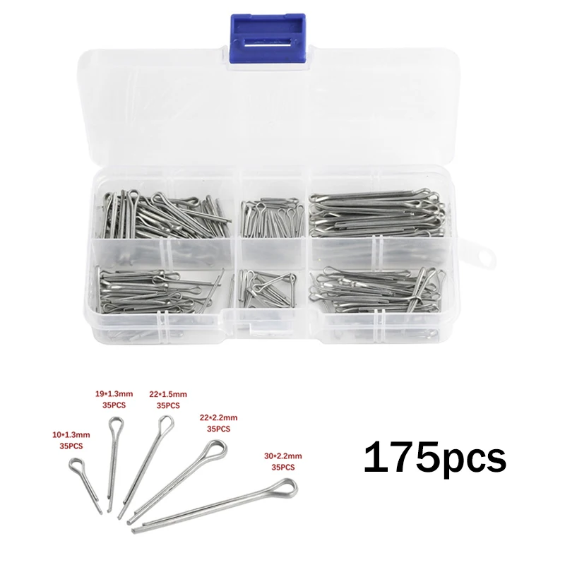 175Pcs Sliver Split Pins Cotter Fixings Assorted Sizes Zinc Plated Steel Hard Case Link Split Cotter Pin high quality
