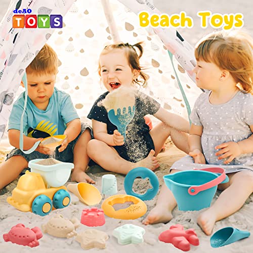 DeAO 17PCS di Sabbia e Giocattoli da Spiaggia per Bambini,con Stampo Beach Castle,Secchi di Sabbia,Pale,Rastrelli,Giocattoli da Spiaggia in Plastica Morbida,Giocattoli da Bagno