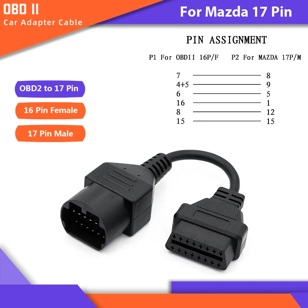 17Pin for Mazda to 16 pin OBD2 will allow you to connect compatible Diagnostic tools for Mazda