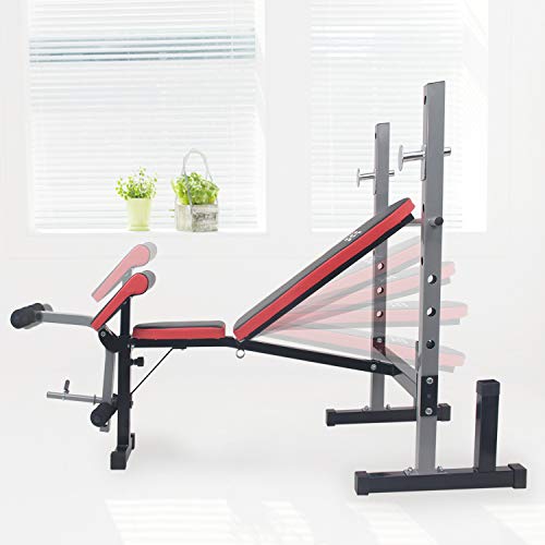 ISE 180*90*120 cm Panca Multifunzione Pieghevole e Supporto,Panca Pesi Addominali con Porta Bilanciere Regolabile,Fitness Palestra Stazioni Inclinabile,Telaio Addensato & Allargato,Max. 150 KG,SY-5070