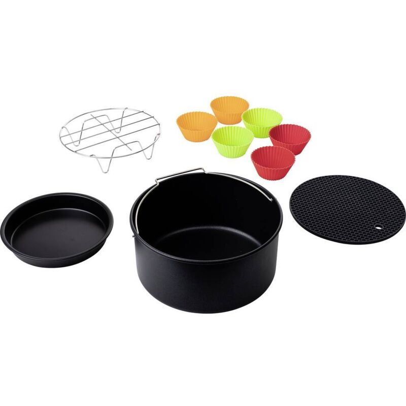 Il pratico set di accessori per friggitrice ad aria della Princess è composto da 10 pezzi e vi dà l'opportunità di sperimentare altri modi di cucinare, infatti è adatto per i modelli di friggitrice ad aria 182020 e 182021. La casseruola è abbastanza spaziosa da contenere una torta per un massimo di 6 persone e si adatta perfettamente al cestino dei modelli 182020 e 182021. In aggiunta, potrete anche preparare la vostra pizza fatta in casa con la teglia per pizza inclusa. Preparerete carne, pesce e verdure senza aggiungere olio sulla griglia. E per concludere la cena, potrete cuocere sei muffin o cupcakes nelle forme al silicone per muffin. Infine troverete un tappetino in silicone incluso nel set, che potrete usare per posizionare il cesto caldo o gli accessori, proteggendo dal calore il bancone della cucina o la superficie del tavolo. Materiale: Metallo e silicone Dimensioni della casseruola: 18,7 x 12 cm (Diametro x A) Set per friggitrice ad aria da 10 pezzi Adatto per le