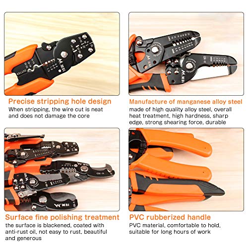 【Multifunzione Spellafili 】Pinza multiuso per sbucciare, aggraffare, serrare e tagliare fili e cavi. Risparmia più sforzo rispetto ai convenzionali spelafili, la linea di spogliatura è migliore, non distrugge la linea, migliora l'efficienza del lavoro. Strumento di livello professionale, essenziale per qualsiasi lavoro di cablaggio.